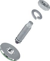 Threaded screw-in stud (carbon steel, metric thread) for electrical connections on steel in mildly corrosive environments. Recommended maximal cross-section of connected cable: 120 mm²